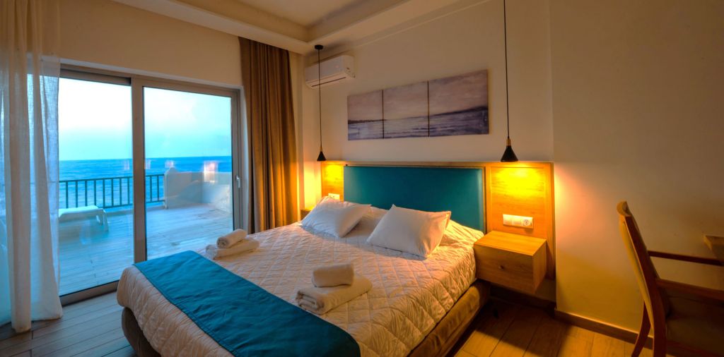 The studios exude a warm, relaxing atmosphere and they are assembled with all modern comforts for a pleasant stay. They come with an en-suite modern bathroom and a fully equipped kitchenette area with a sink, electric rings, and cooking utensils. The studios have a great view of the sea and are the perfect choice for families, couples, or a group friends, able to accommodate from two up to four people.